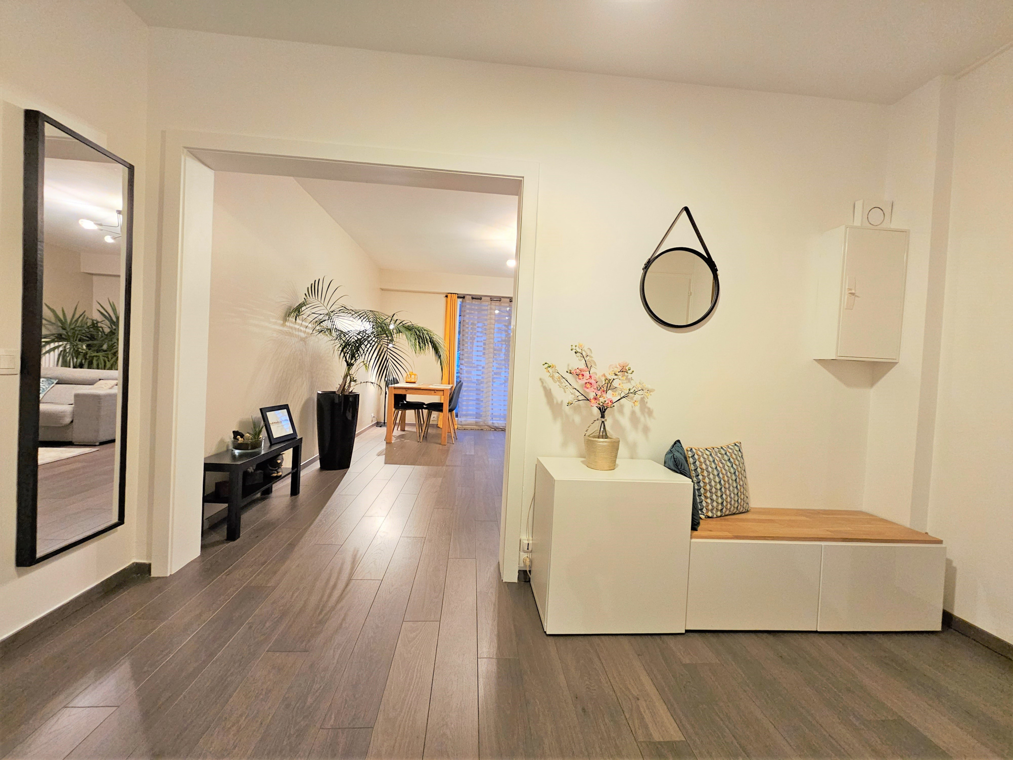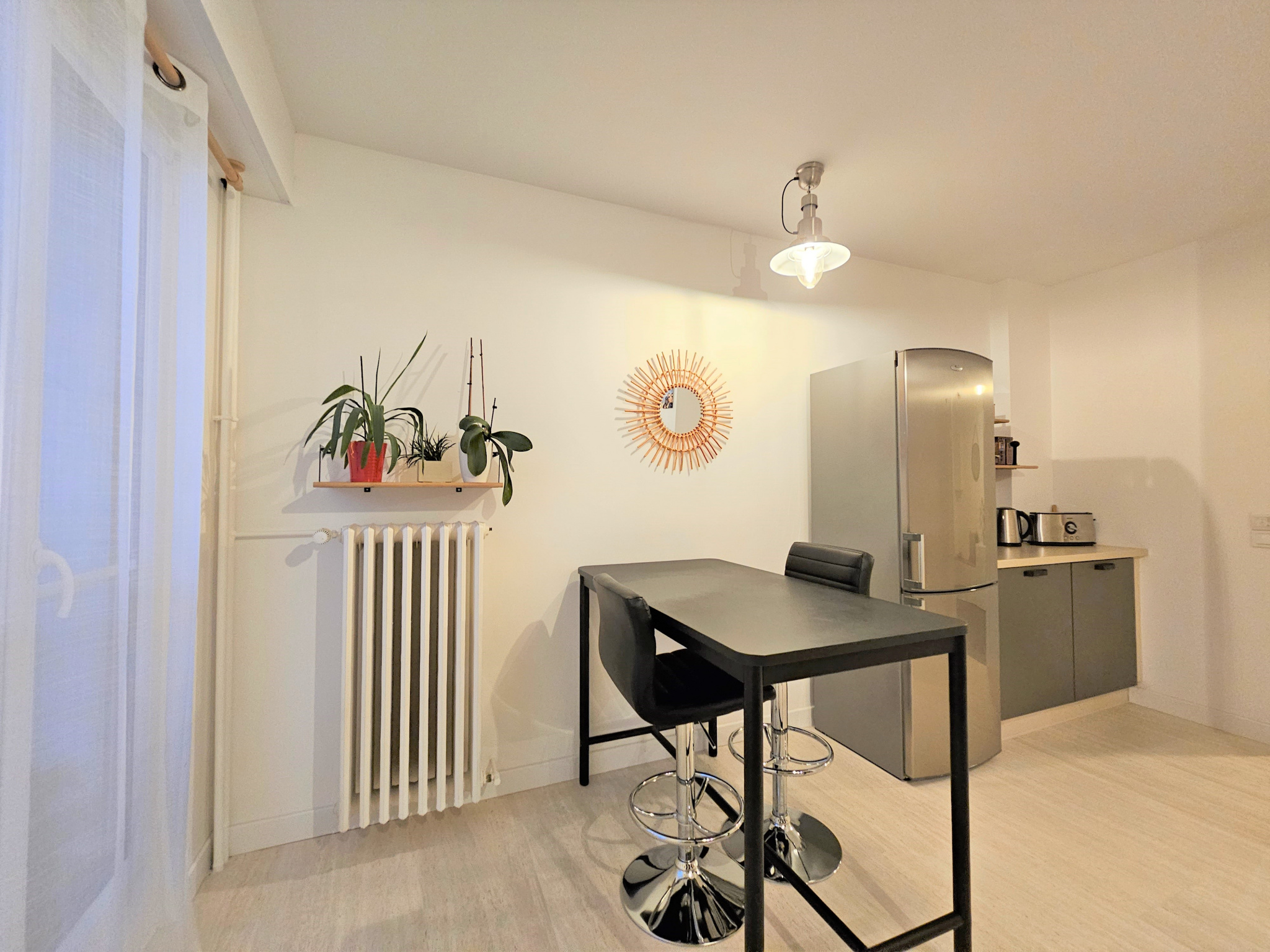 La pièce de vie est semi-ouverte sur un grand dégagement de 8.5m2 qui sépare la cuisine équipée de 14.40m2. Un second balcon de 2.7m2 complète cette cuisine.