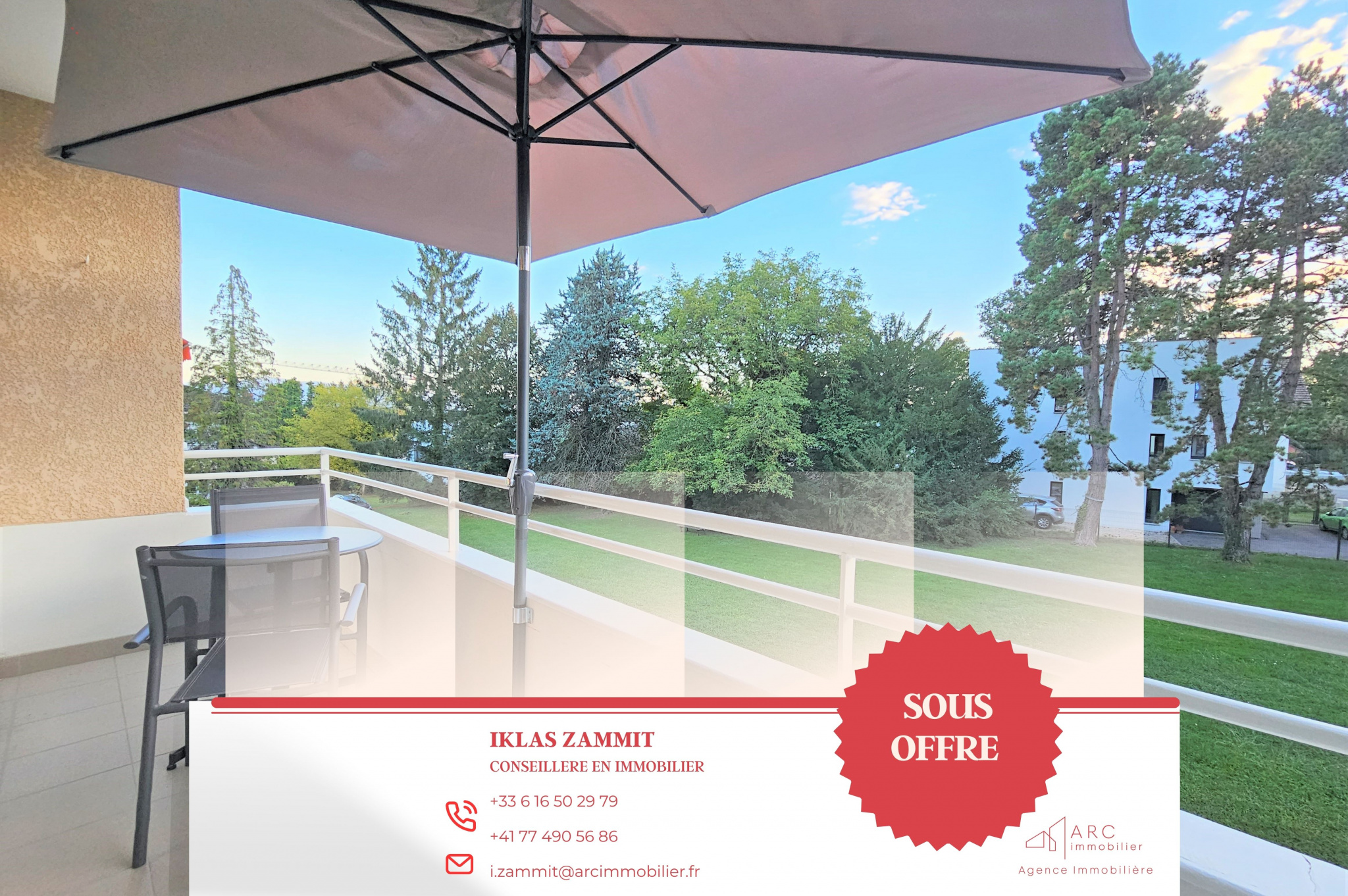 Vue dégagée sur le parc privé de la résidence, cette propriété de 91m2 habitable, se situe à quelques pas du centre de Divonne-Les-Bains.