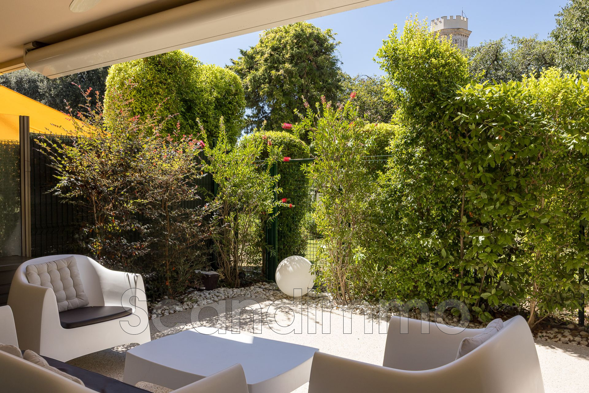 Bien d’exception aux portes du Cap d’Antibes ? Résidence Château de la Pinède – Superbe appartement de plain-pied de 4 pièces, grande terrasse et jardin privatif