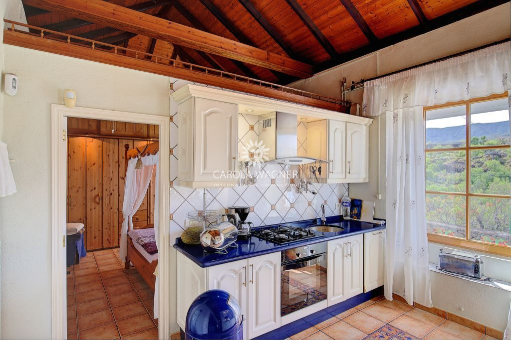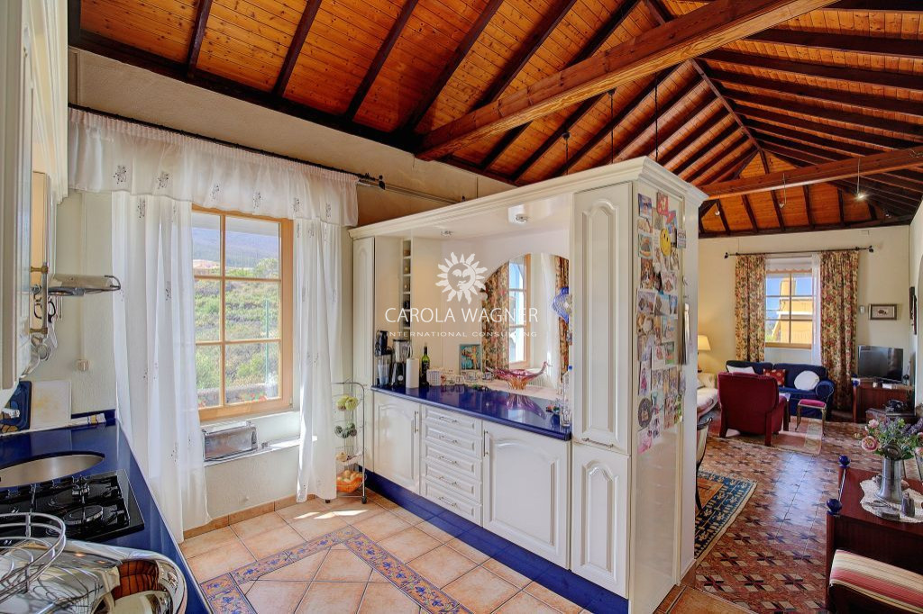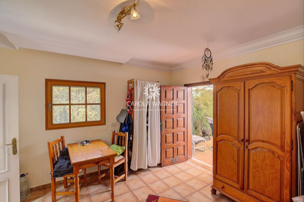 PRESTATIONS: Style canarien, En partie toit plat et en partie toit typique canarien, Belle cuisine en bois massif faite sur mesure, avec lave-vaisselle, Portes et fenêtres en aluminium ou bois avec double vitrage, En partie oscillo-battantes, Partiellement munies de volets roulants en alu et écran anti-mouche, persiennes électriques, carrelage, Pergola en bois, Chauffage à gaz, Poêle à bois, Alarme, Raccordement à l’eau de ville, Action d’eau en propriété, Internet par fibre optique, TV/SAT, Murs de jardin pierres canariennes.