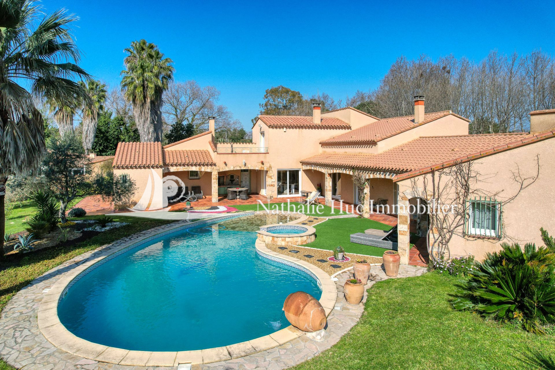 Saint Cyprien Plage – 66570 – Dans un cadre exceptionnel magnifique propriété de 275 m² sur un parc arboré de 1832 m². Au rez-de-chaussée, une belle entrée, une grande cuisine indépendante équipée avec cheminée donnant sur 2 larges terrasses. Un séjour cathédrale avec cheminée. Sur l’aile gauche 2 suites parentales et dressing. A l’étage une grande mezzanine, salle d’eau et de 2 belles chambres avec placards dont une avec terrasse.