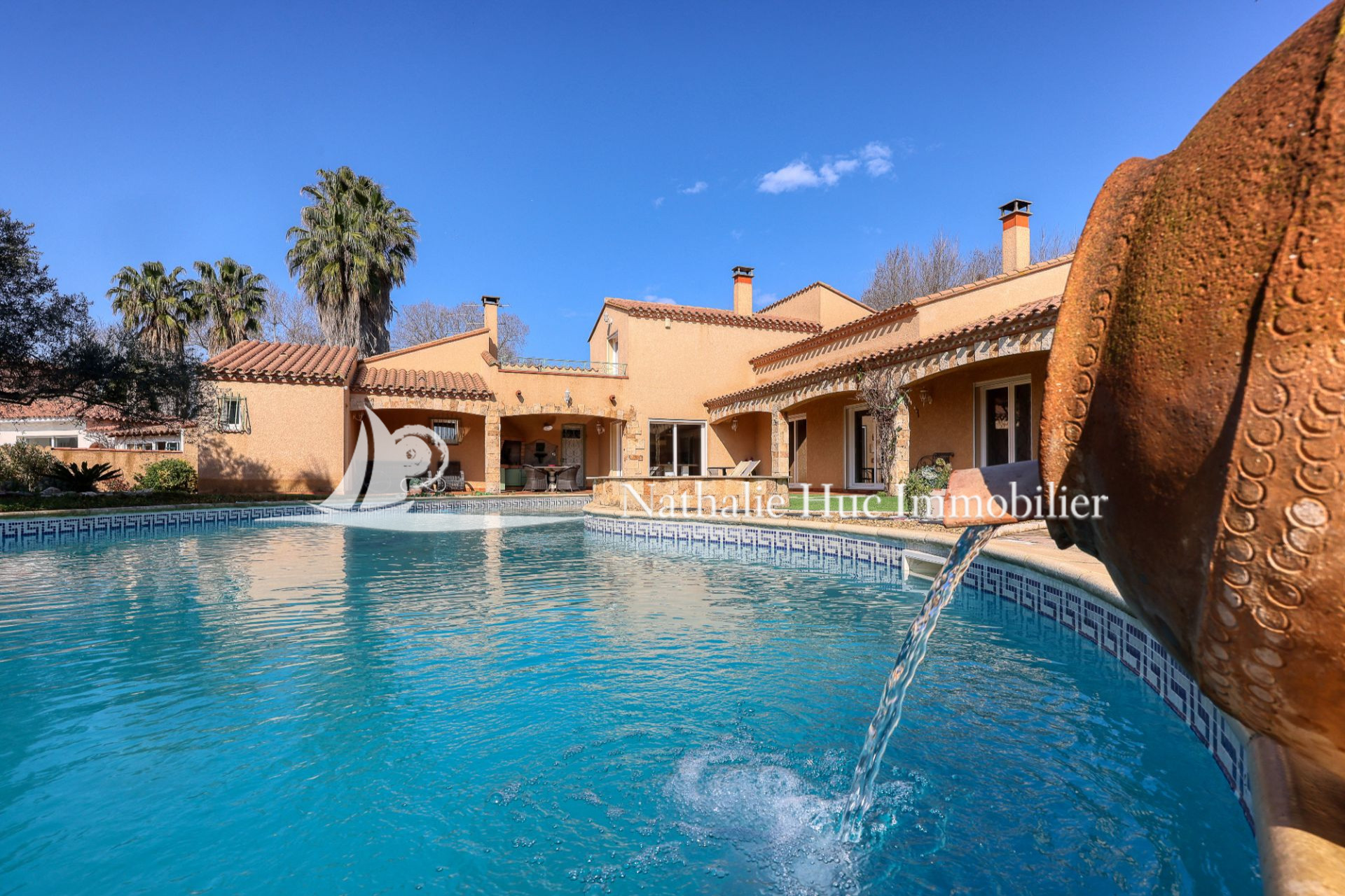 Grande piscine avec jacuzzi, un garage et 2 parkings couverts.