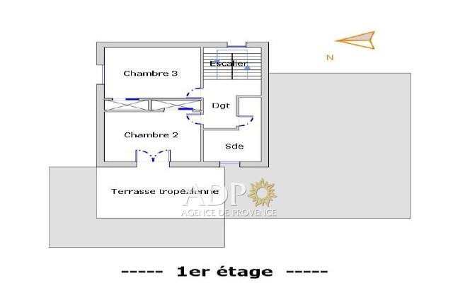 au R+1: Deux chambres, une salle de douches avec WC. Terrasse (tropézienne).