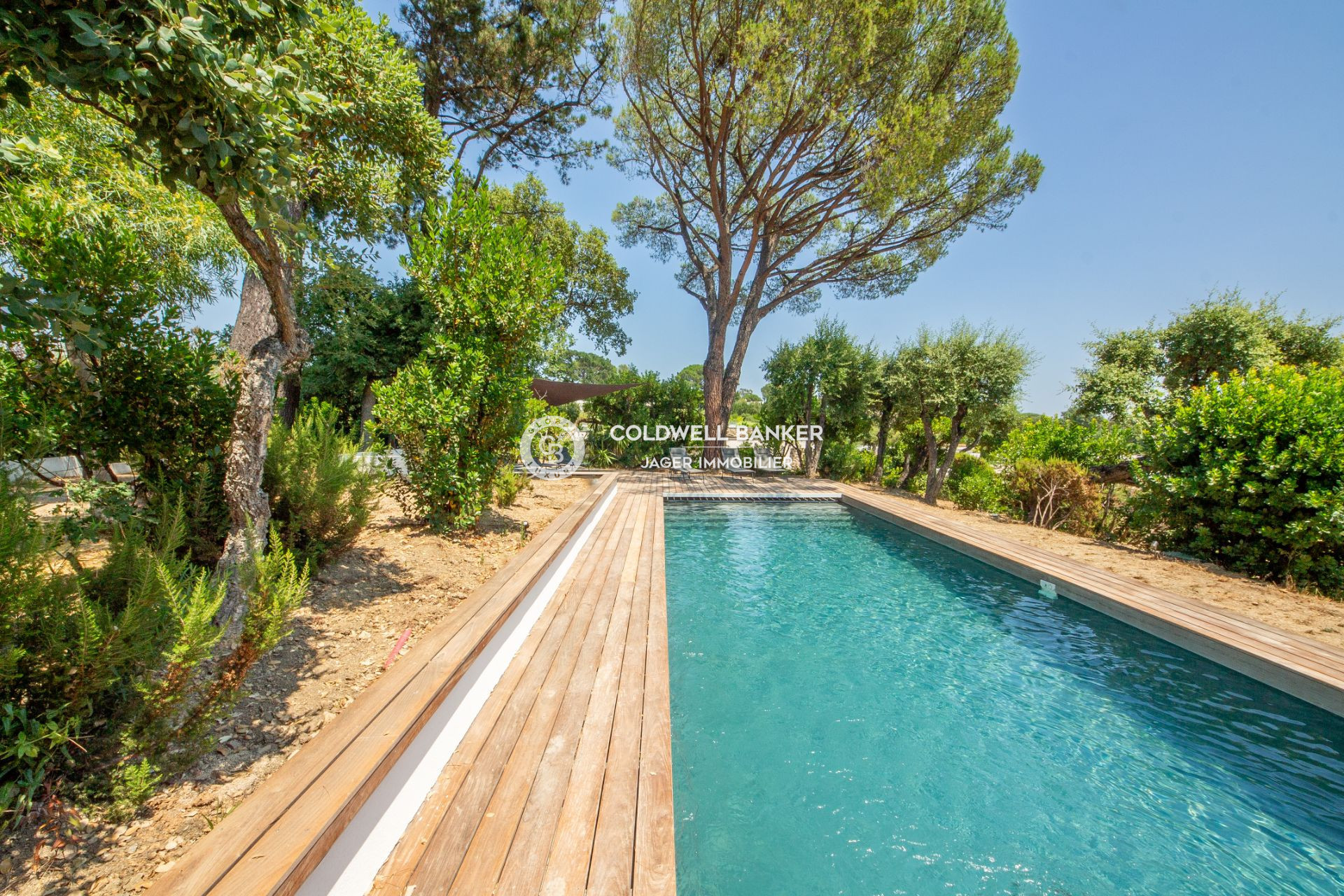La piscine est bordée de larges plages en teck, partiellement ombragées par des pins parasols et des chênes. Un pool-house équipé d’une cuisine d’été vous apportera tout le confort nécessaire.