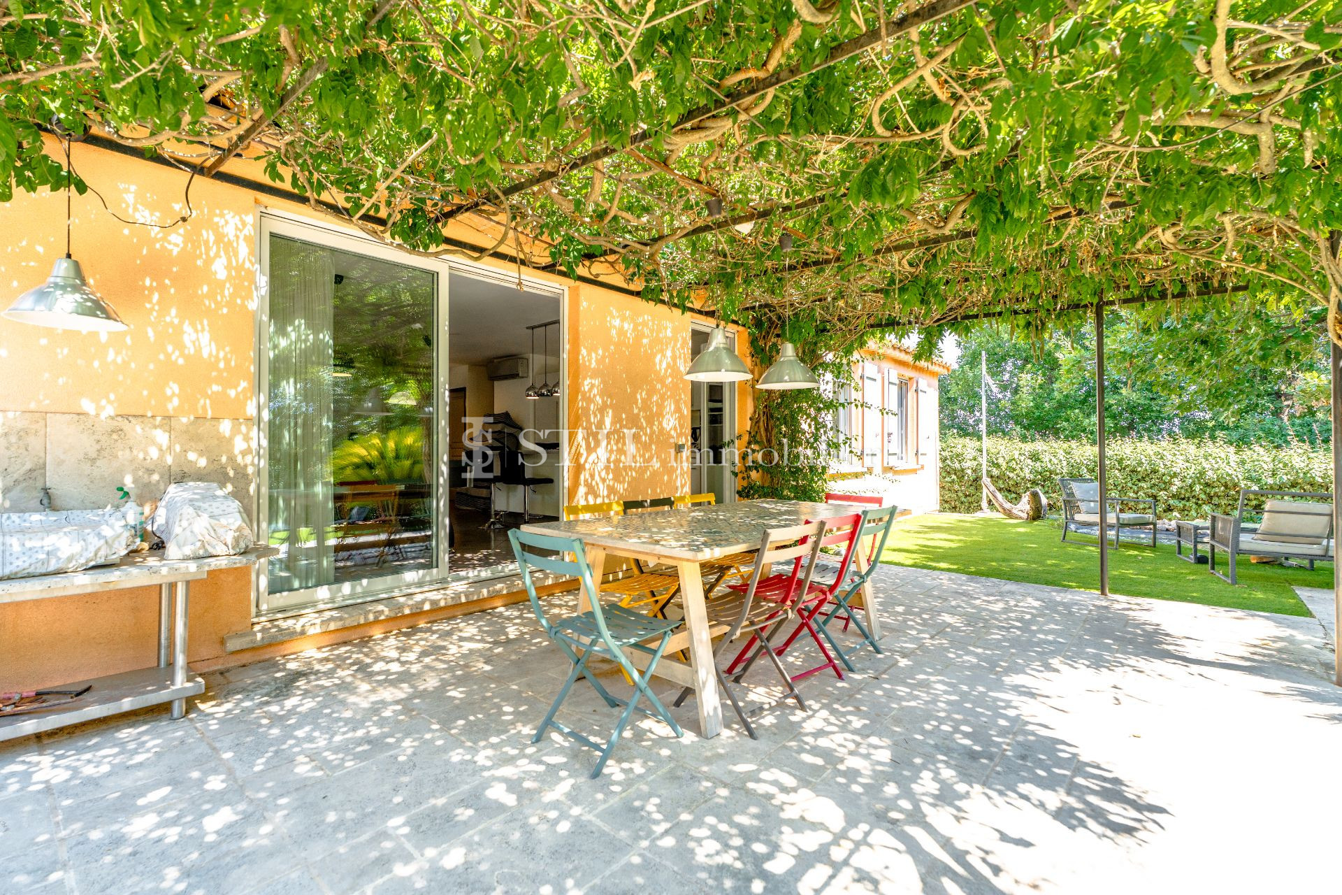 Vente villa Grimaud. Située dans un secteur calme à env 5 min du centre de Grimaud, superbe villa de plain-pied d’env 100m². Elle se compose : entrée, wc invités, séjour avec poêle à bois donnant sur terrasse couverte, cuisine us équipée, 3 chambres, salle de bains balnéo, salle d’eau et buanderie. Garage double et cabanon de jardin. Une piscine ainsi qu’un bassin agrémente le jardin joliment arboré.