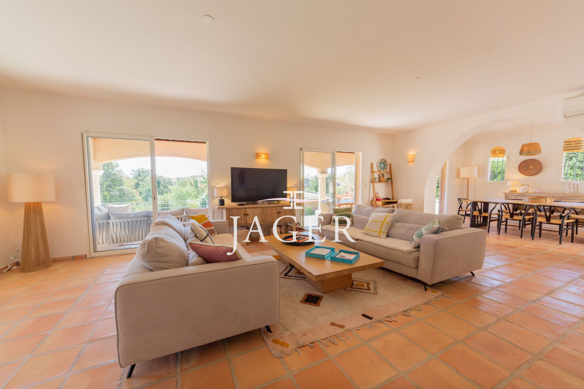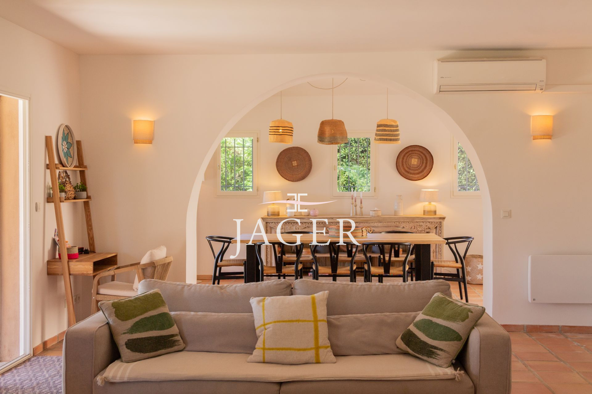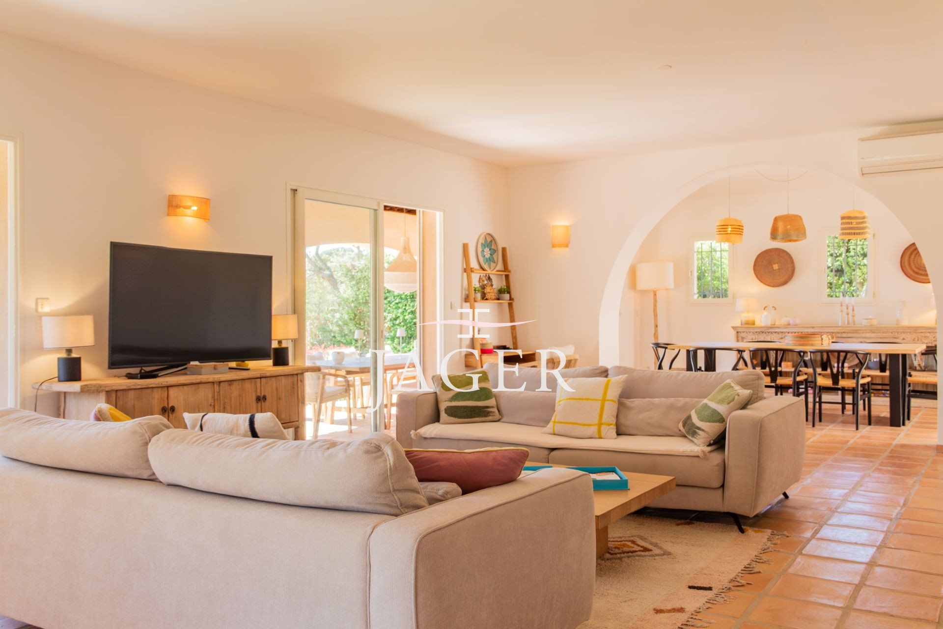 Cette élégante propriété d’environ 250 m², alliant charme et confort, est située dans un environnement calme et sécurisé, à quelques minutes à pied de la plage.