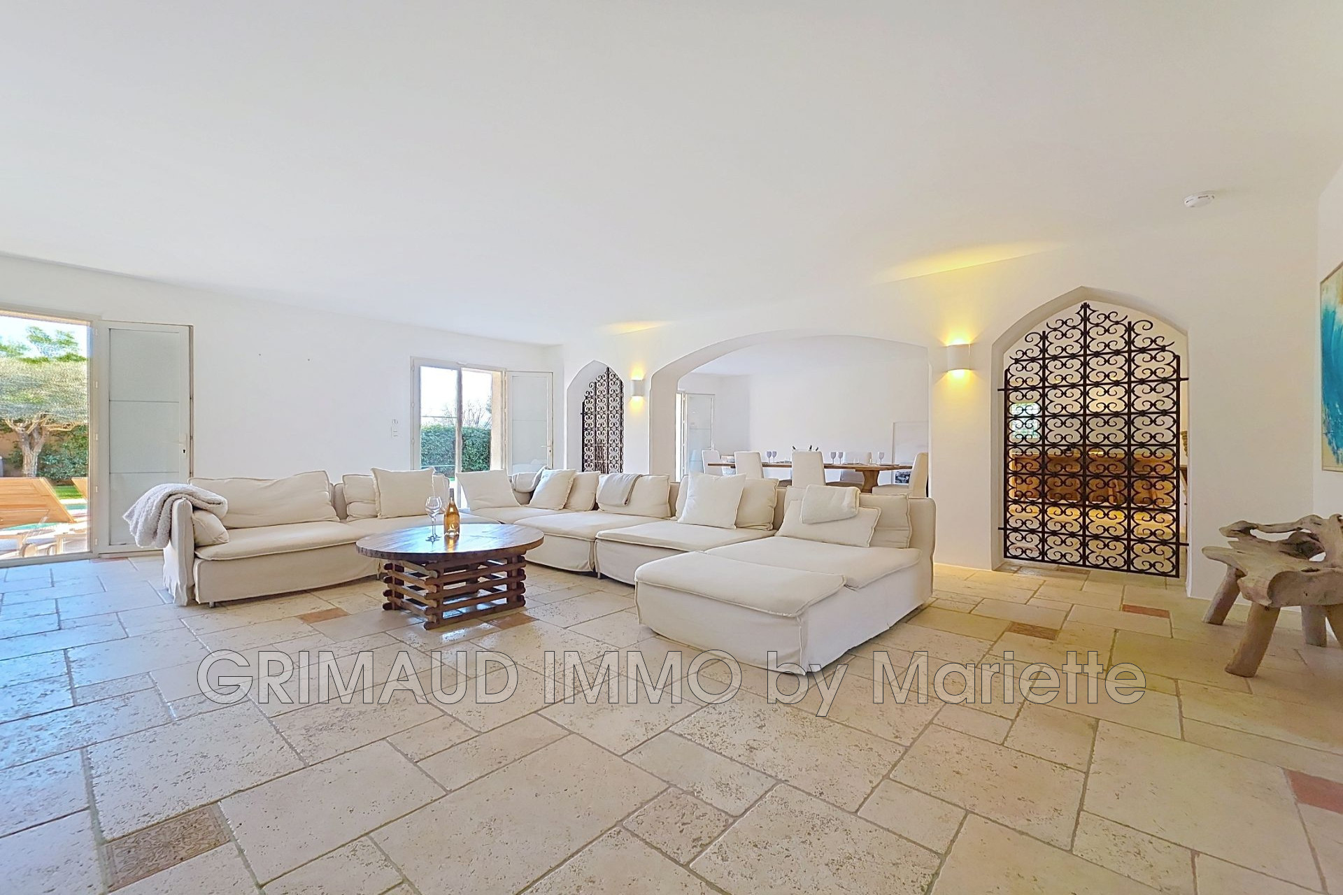 Actuellement sur le marché, cette magnifique maison indépendante située dans la ville pittoresque de Grimaud, bénéficiant d’une excellente exposition face au sud. Érigée sur deux étages, cette demeure repose 1044 m² de terrain, incluant un charmant jardin qui offre une vue tranquille. Datant de 2004, la maison est en superbe condition, dévoilant un intérieur soigné. L’habitat offre une cuisine tout équipée et une buanderie. Elle est composée de quatre chambres, quatre salles de bains, cinq toilettes et une cave, et met à disposition divers avantages haut de gamme tels que la climatisation, buanderie, aspiration centralisée, double vitrage, un portail automatisé et une piscine. Ce tout, au sein d’un environnement d’un calme étonnant. Un véritable refuge à découvrir sans plus tarder!
