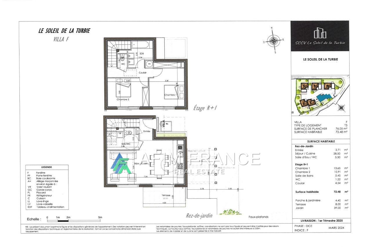Charmante villa individuelle neuve de 77.41m², située dans le très recherché quartier Village de La Turbie. Sur deux niveaux et bénéficie d’une exposition Sud, laissant profiter d’une lumière naturelle abondante toute la journée. Elle est composée de deux chambres confortables, d’une salle de bain ainsi que d’un WC séparé. Vous apprécierez la cuisine américaine ouverte sur un séjour de 29m², donnant sur une terrasse privative avec vue sur le jardin. Son état intérieur neuf et ses prestations de qualité, notamment le double vitrage, sauront vous séduire. La maison comporte également deux emplacements de parking. Le terrain d’une superficie de 90m². Livraison fin 2024, frais de notaire réduits.