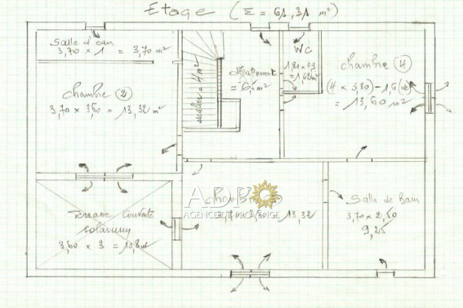 A l’étage : 3 chambres , salle de bains et salle d’eau.WC