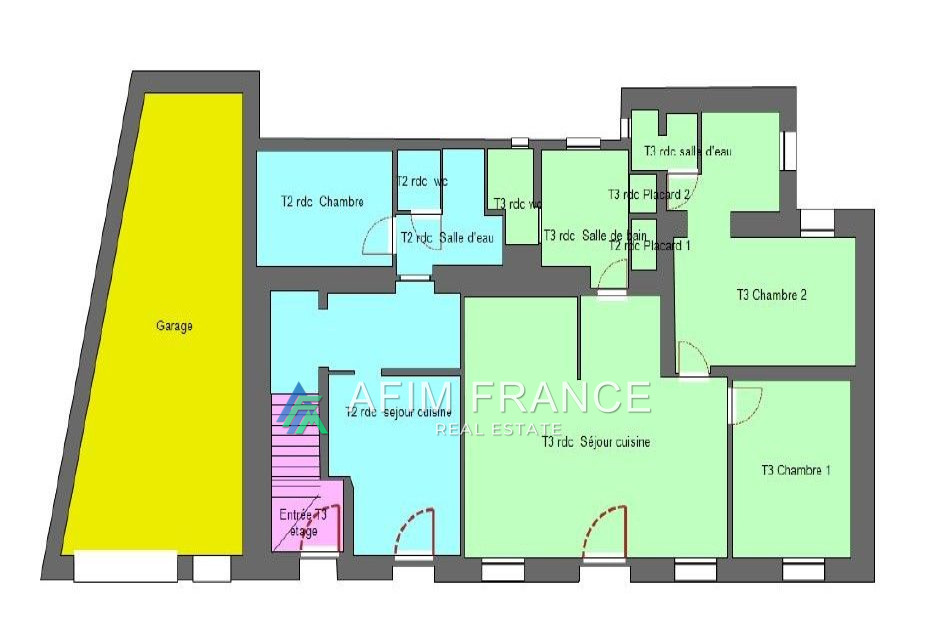 – Au niveau Rez-de-Chaussée, sur une surface totale de plancher de 124 m², avec accès direct de toutes les pièces sur le jardin au Sud: un appartement de type 3 Pièces de 64 m², un appartement de type 2 Pièces de 30 m² et un double garage/atelier de 30 m²