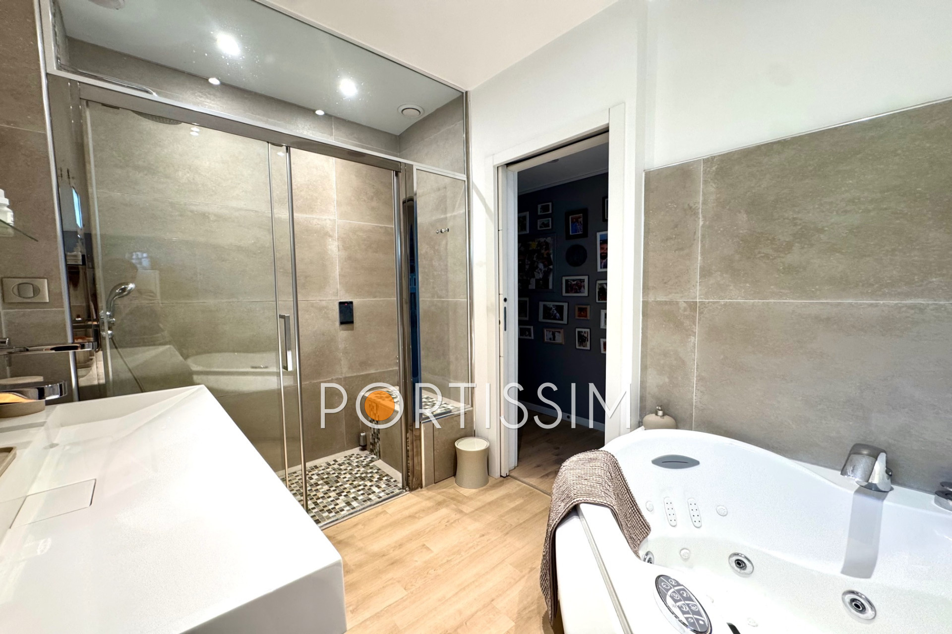 une cuisine américaine équipée, deux chambres spacieuses, un bureau, une salle de bain complète avec baignoire balnéo et douche hammam, un toilette japonais indépendant .