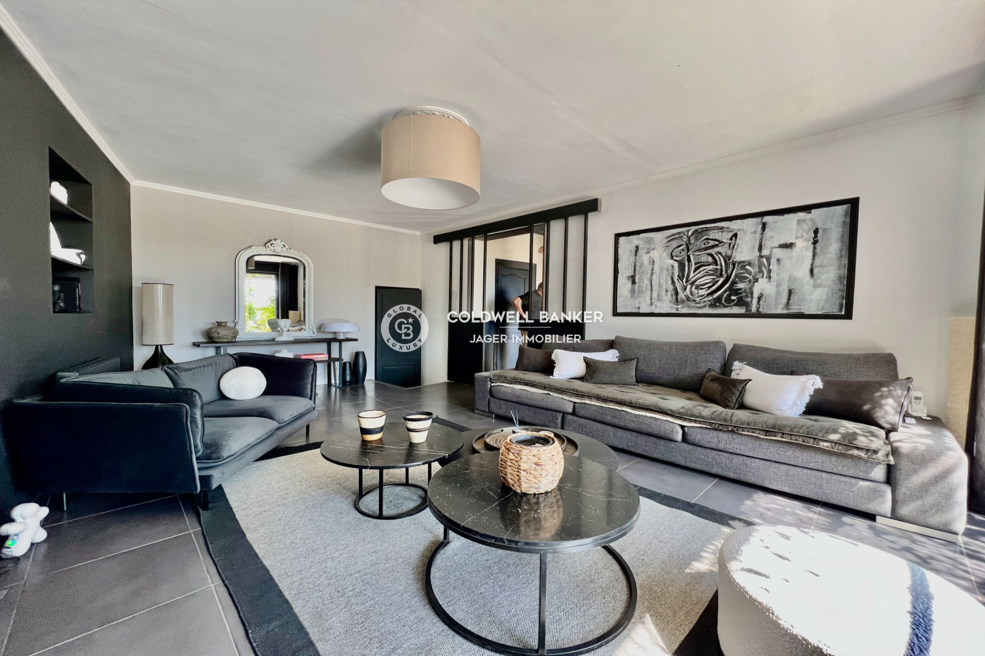 D’une surface de 130 m² environ, il offre un vaste salon avec une grande baie vitrée donnant sur la terrasse et le jardin luxuriant.