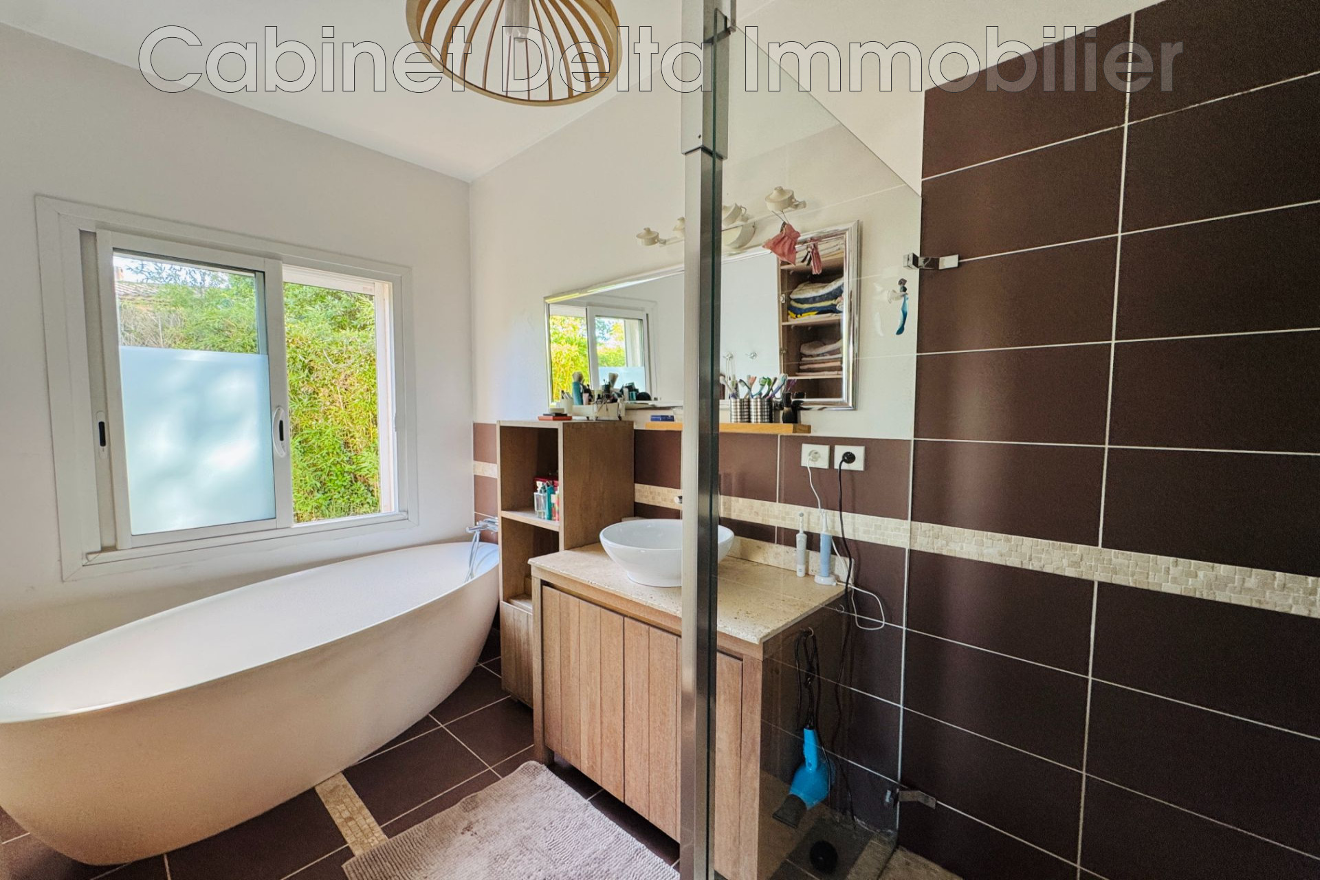 Elle se compose d’une entrée ouvrant sur un vaste salon-séjour lumineux avec cuisine américaine entièrement équipée, d’un bureau, d’un WC indépendant, d’une buanderie, ainsi que d’une suite parentale et 3 chambres avec accès direct à la terrasse.