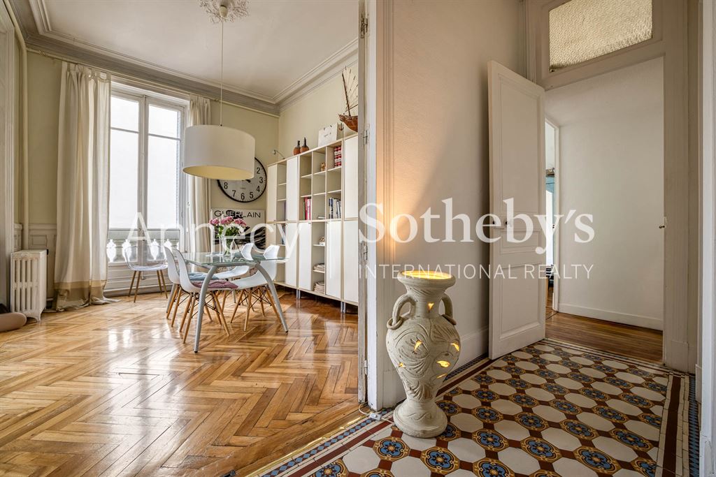 ANNECY SOTHEBY’S INTERNATIONAL REALTY vous propose ce superbe appartement au style haussmannien, alliant charme de l’ancien et élégance intemporelle, moulures, parquet en chêne, belle cheminée et généreuses hauteurs sous plafond.