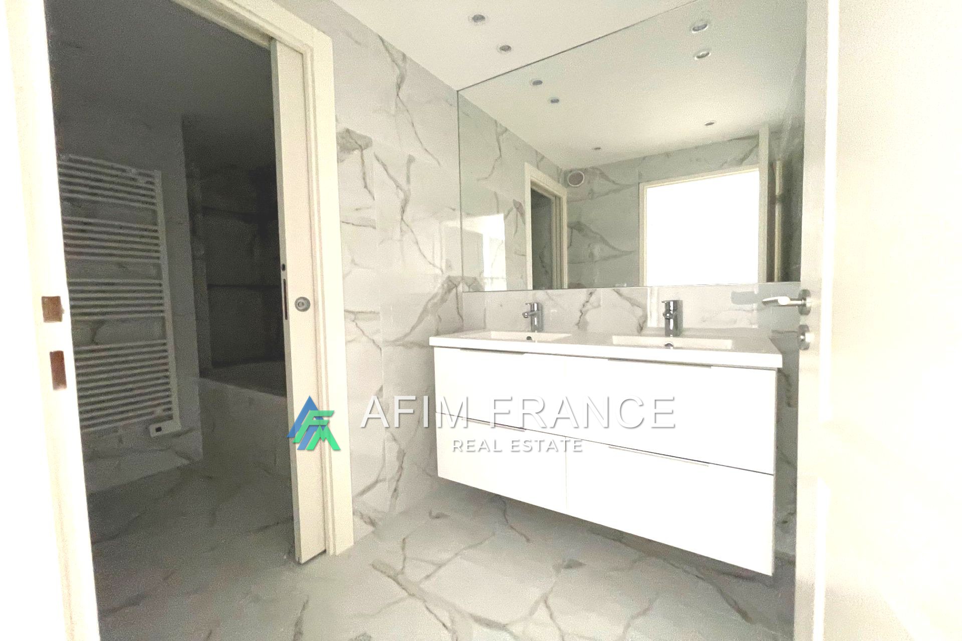 L’appartement entièrement rénové, ouvre sur une vaste terrasse offrant une jolie vue sur la mer et sur Monaco, et bénéficie d’une belle luminosité grâce à son agencement traversant et sa situation en étage élevé.