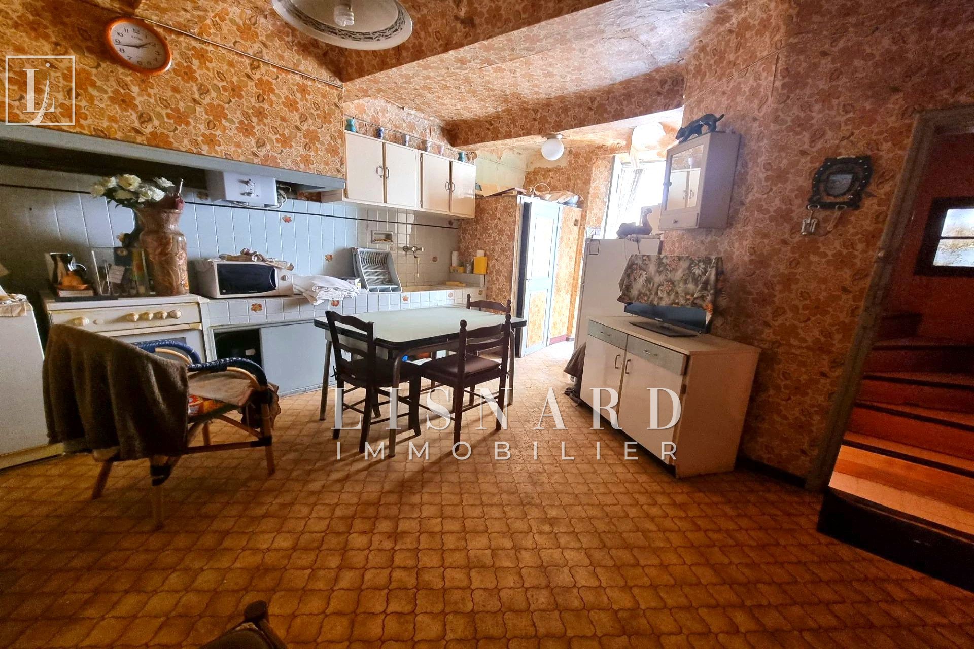 Au 1er étage séjour, cuisine et une chambre.