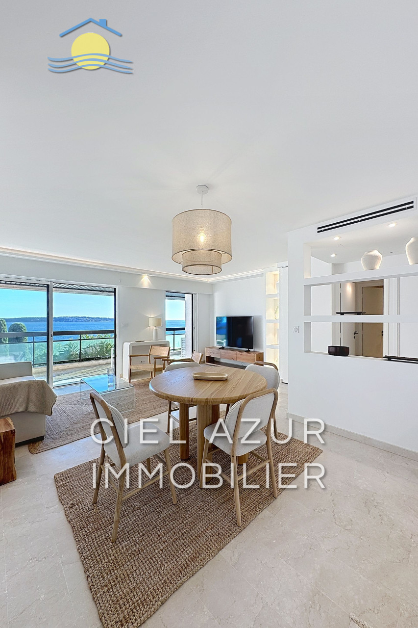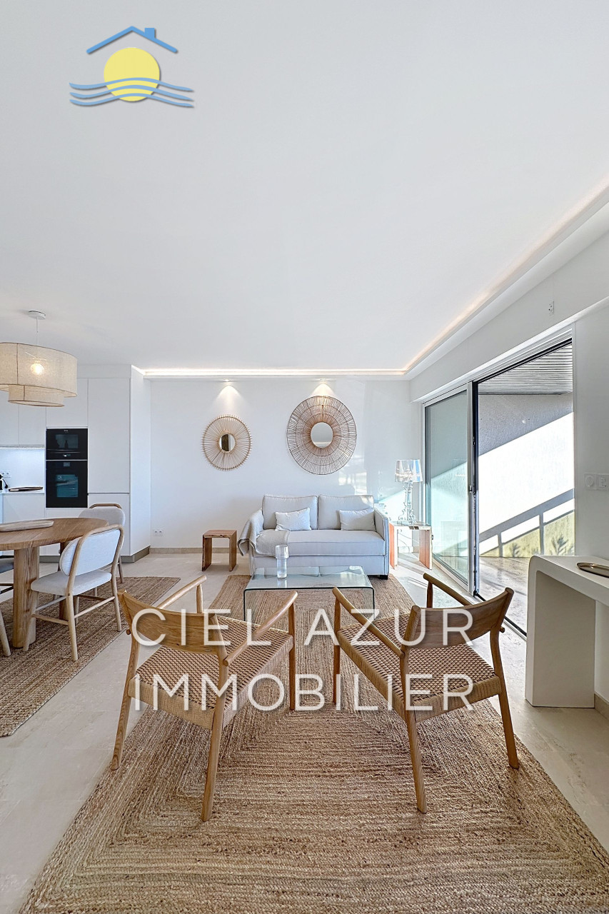 Baigné de lumière grâce à son exposition sud / sud ouest, l’appartement offre une vue époustouflante sur la Méditerranée, depuis le séjour comme la chambre.