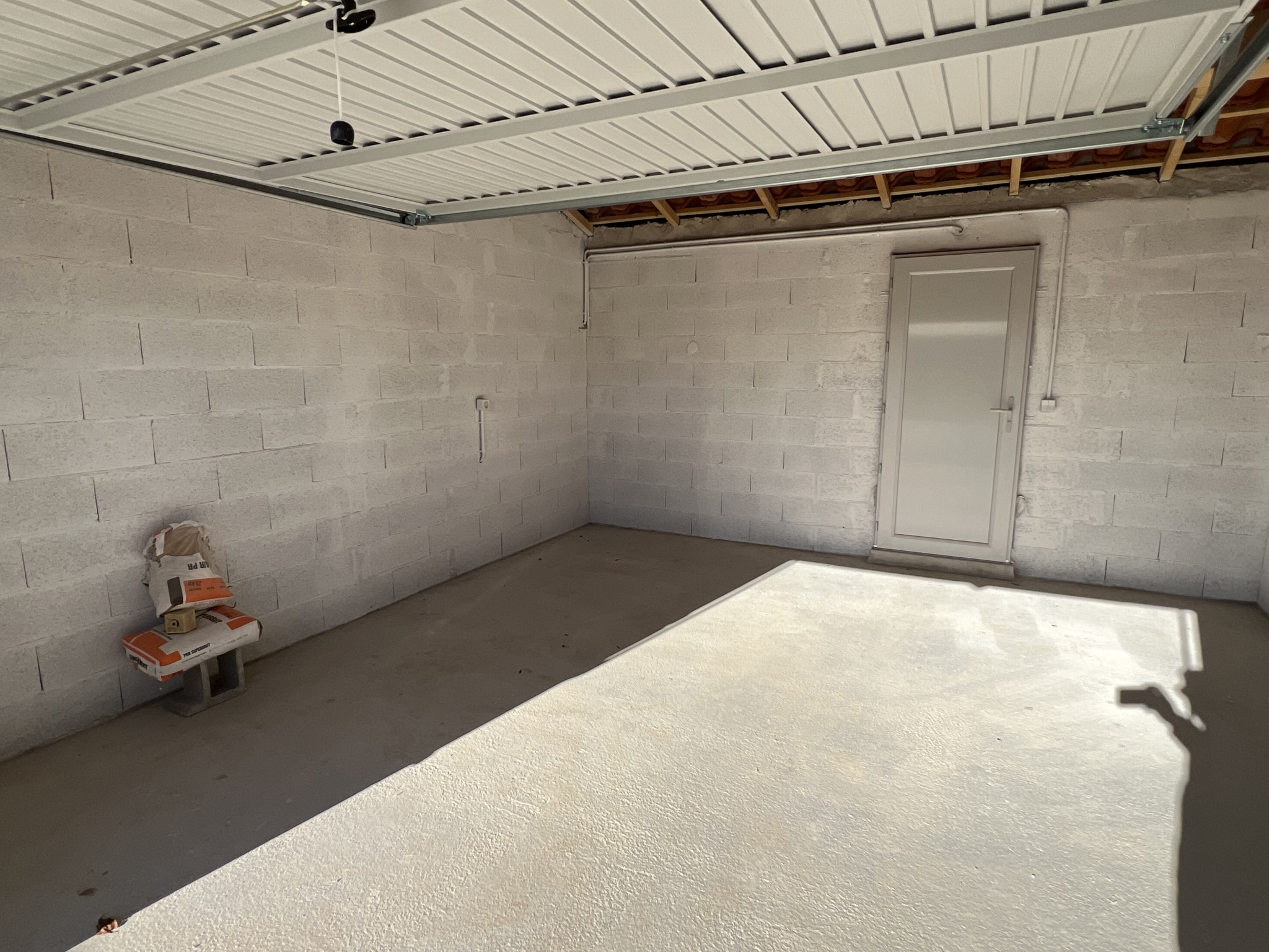 Garage de 24 m2 avec porte de service. Terrain de 480 m2, avec portail automatisé et visiophone. Clôture en cours de finition.