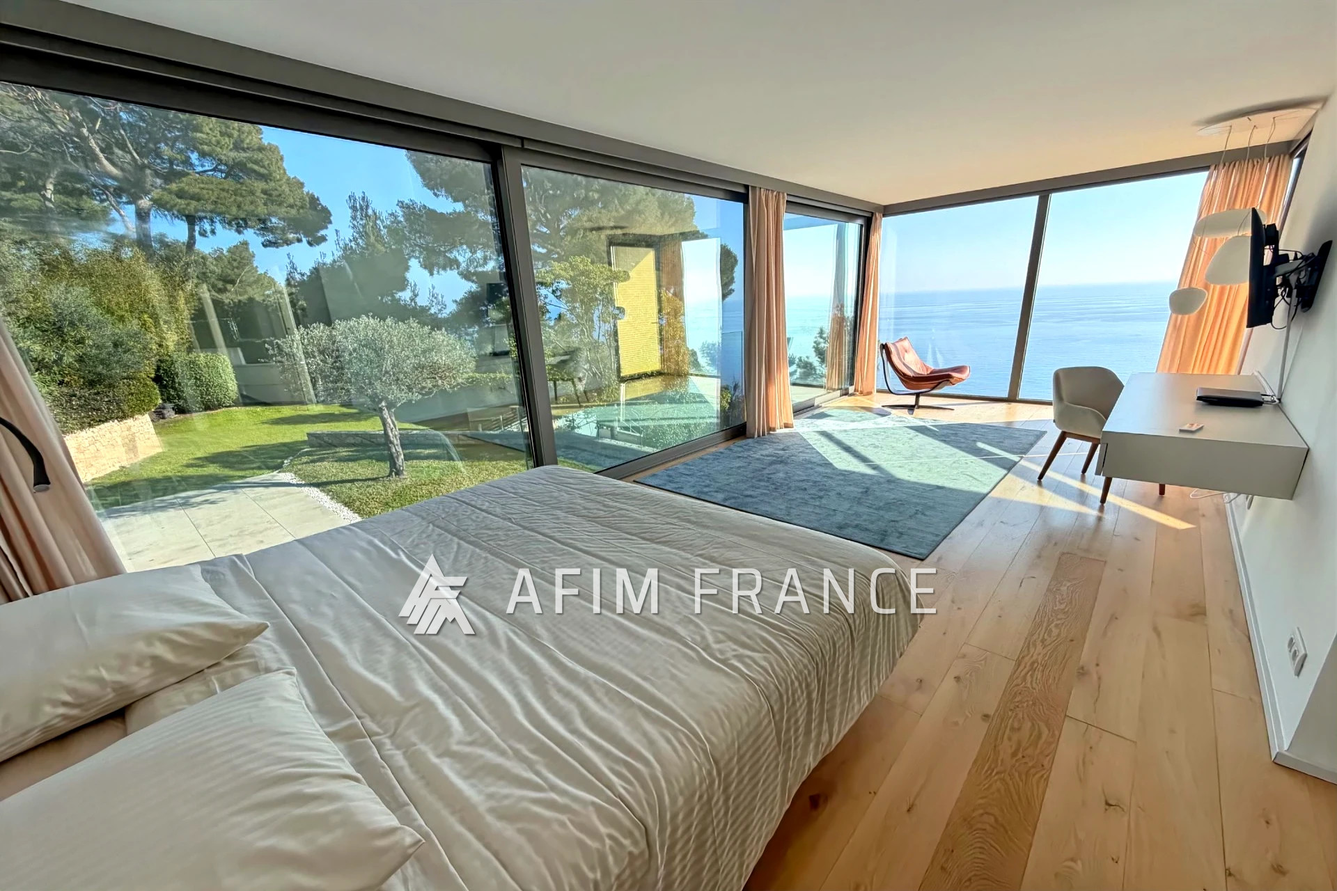 Cap d’Ail, magnifique villa Californienne neuve d’environ 400m² meublée. Emplacement exclusif. Composée d’un double séjour, 5 chambres dont une master de 50m² avec hammam et dressing et 6 salles de bains. Prestations luxueuses. Ascenseur. La propriété bénéficie d’une vue mer panoramique en exposition plein Sud. Piscine. Terrain 1 500m².