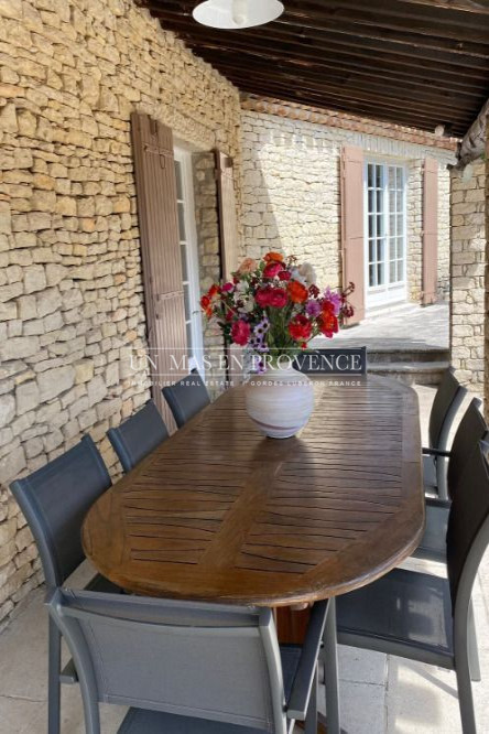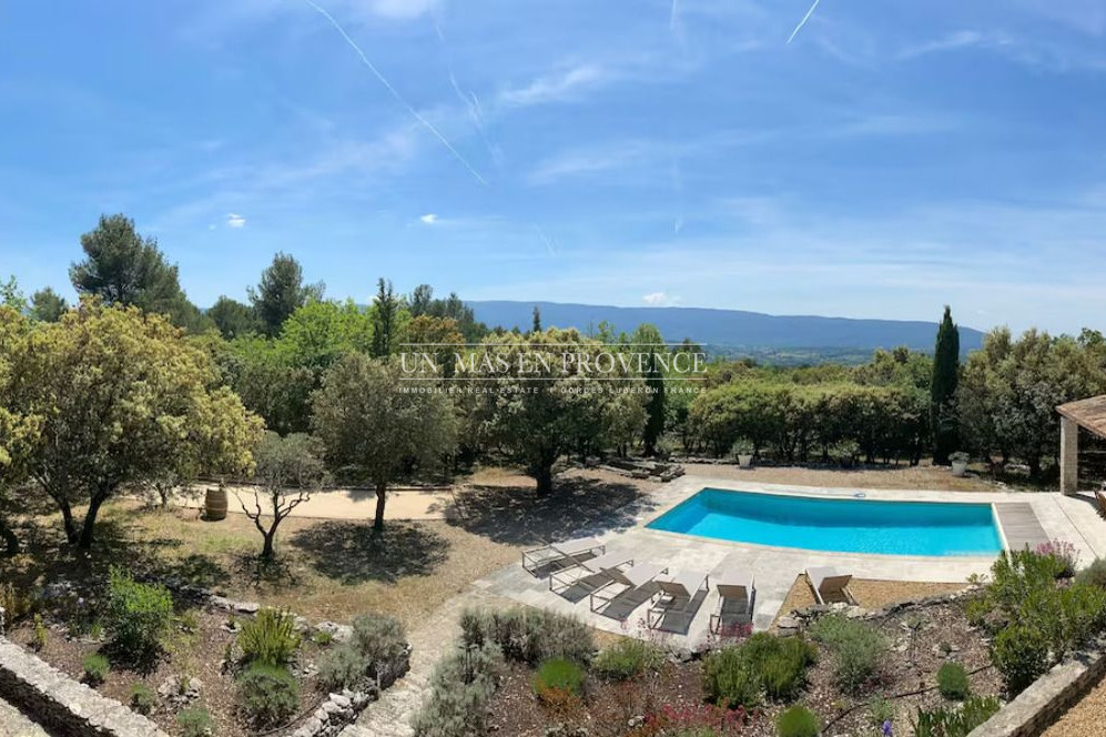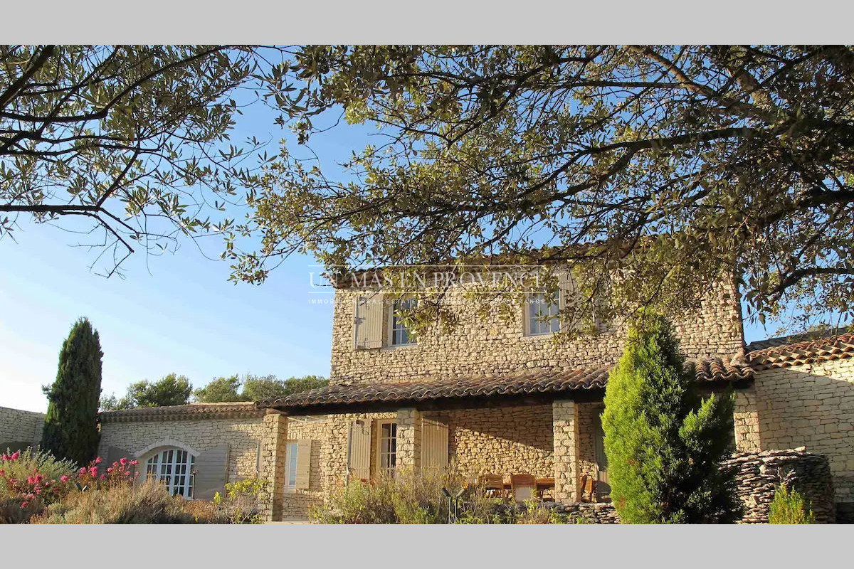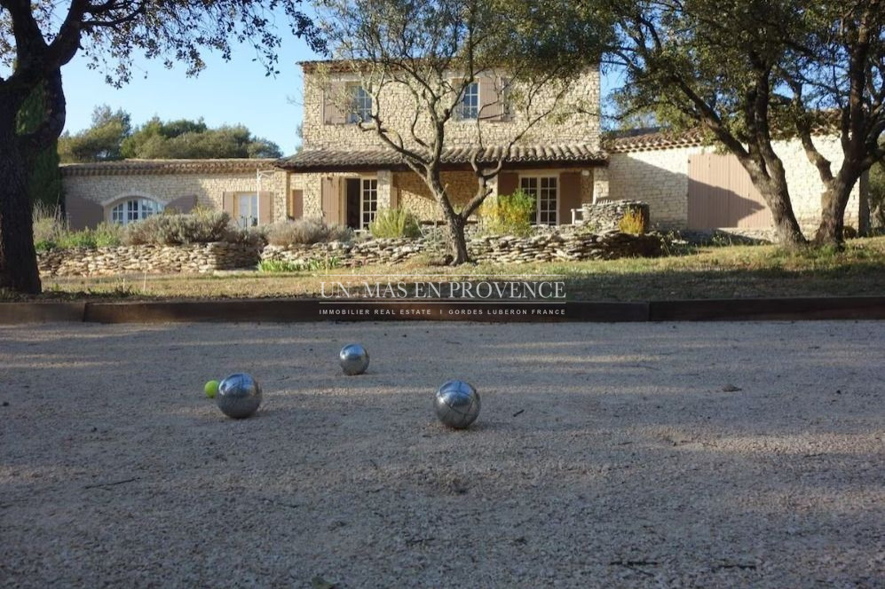 Situé sur une colline entre les villages perchés de Gordes et Goult, ce superbe mas provençal bénéficie d’un emplacement privilégié au coeur du Parc naturel régional du Luberon. Implantée sur un vaste terrain arboré, la propriété offre une vue panoramique exceptionnelle sur les reliefs du Luberon et la campagne environnante. Accessible par une allée traversant le domaine, elle garantit calme, intimité et dépaysement total, tout en restant à proximité immédiate des plus beaux villages de la région. Un cadre idéal pour profiter pleinement de la douceur de vivre provençale, entre nature, lumière et authenticité.