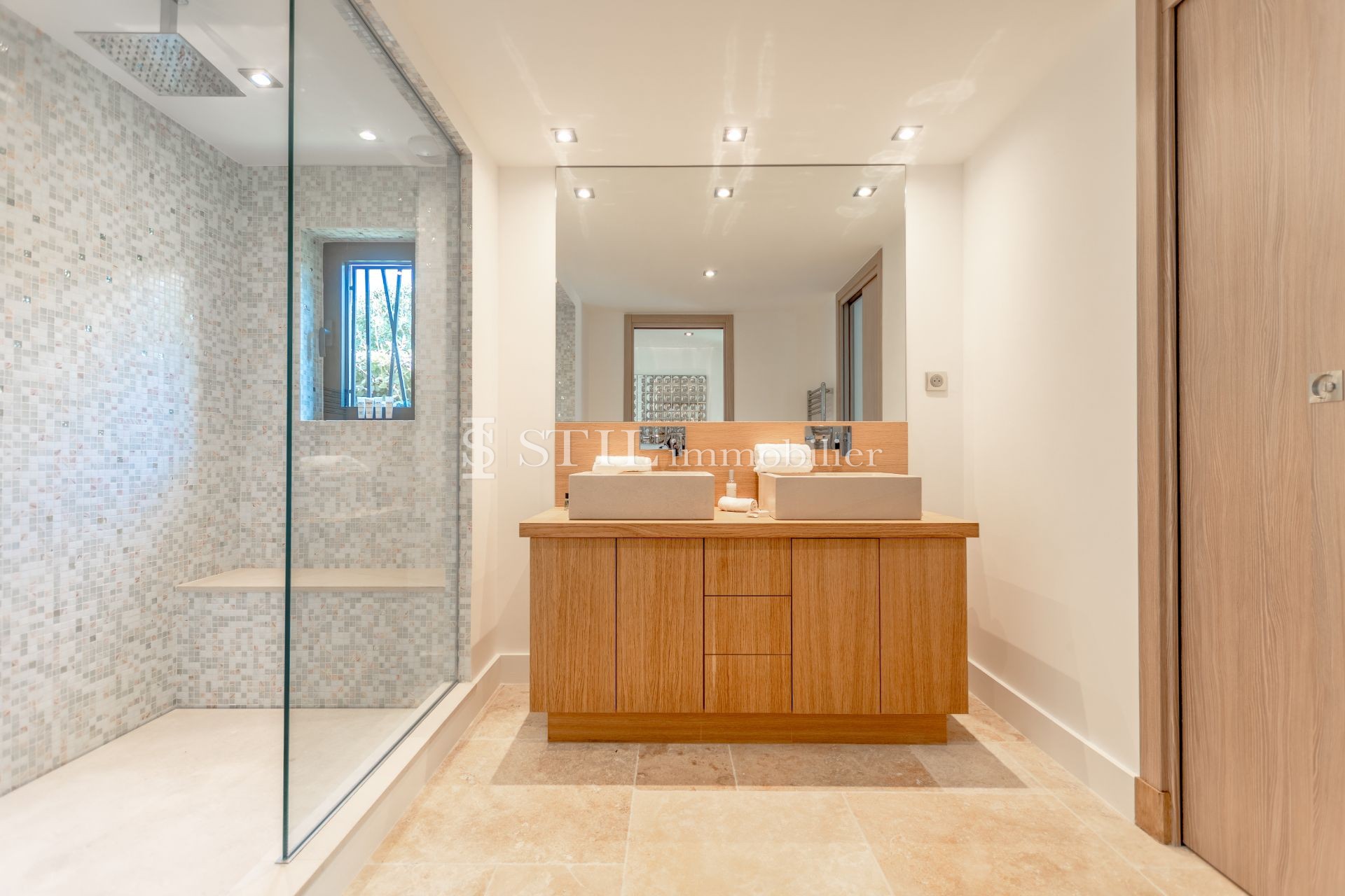 Location Saisonnière Sainte-Maxime. À Sainte-Maxime, dans un domaine sécurisé à deux pas des plages de la Nartelle, cette magnifique villa contemporaine neuve de plain-pied a de quoi séduire ! Vaste séjour lumineux ouvrant sur une large terrasse, salle à manger, cuisine us équipée, 4 chambres en suite avec douche. Une charmante piscine agrémente le jardin complanter de cette très belle villa.