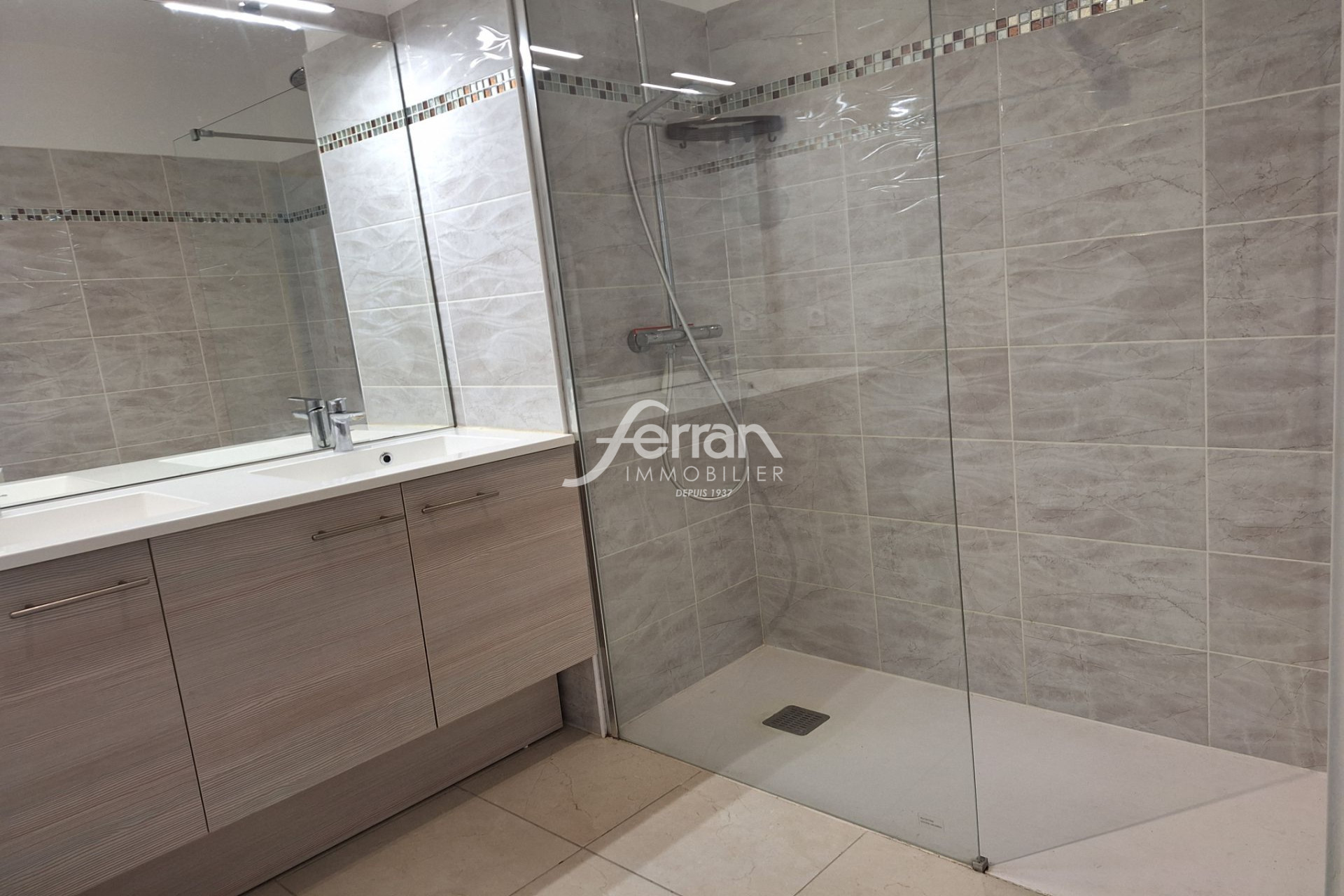 louer dans rsidence rcente, Type 3 lumineux de 55 m en rez-de-chausse se composant d’une entre avec placard, dgagement desservant la salle d’eau, le WC et les deux chambres avec placard, sjour ouvrant sur balcon, cuisine ouverte quipe.