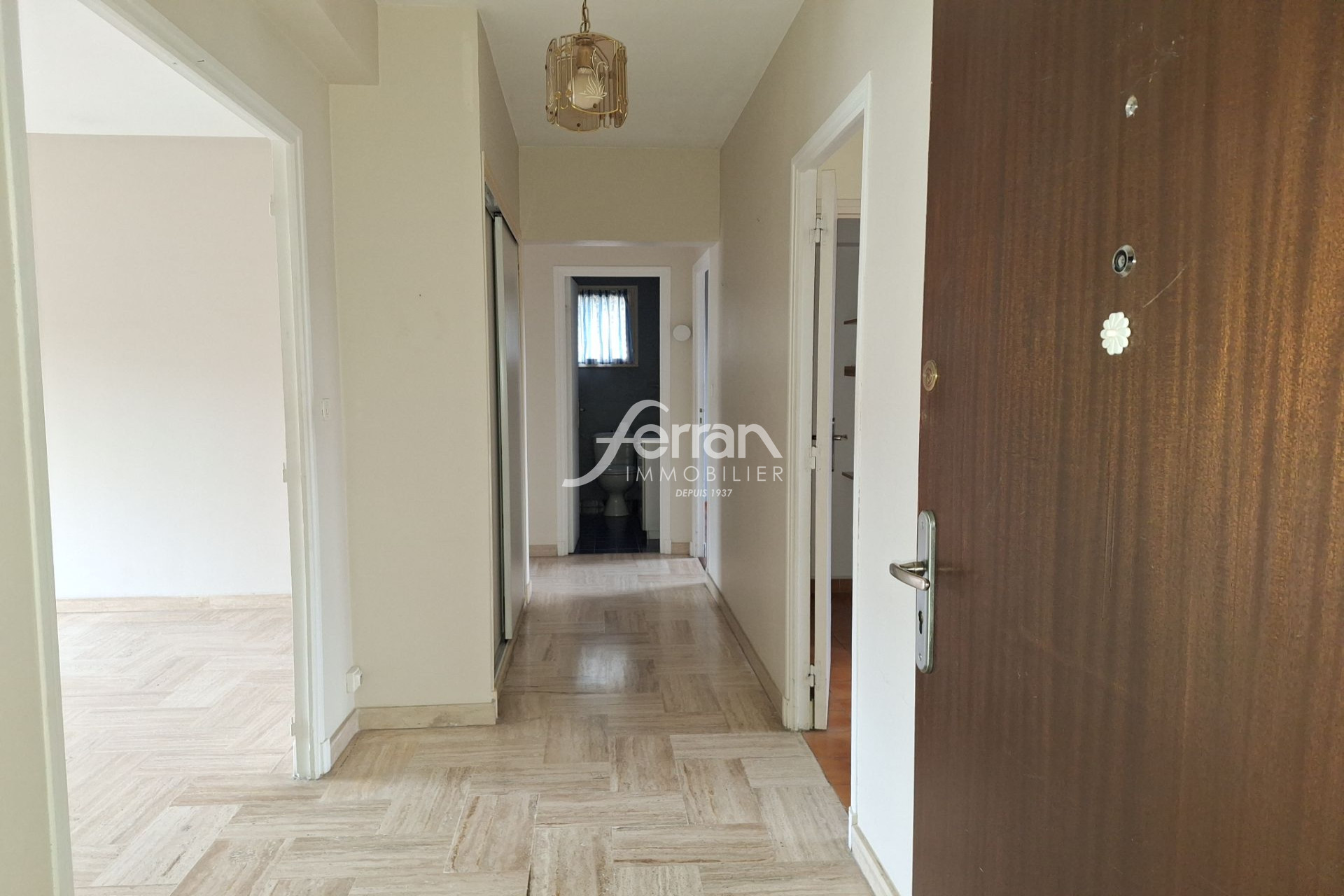 Dans petit immeuble proche du centre-ville, Type 3 de 77 m² au 1er étage sans ascenseur. Il se compose d’une entrée, séjour avec climatisation, balcon filant, cuisine indépendante aménagée avec cellier attenant, balcon, d’un dégagement avec placard desservant 2 chambres dont une avec placard, salle de bains et WC. 1 place de parking et une cave.