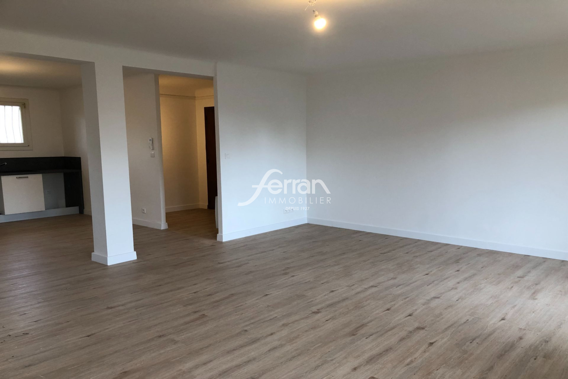 Dans petite résidence, Type 3 de 79 m² au 1er étage sans ascenseur. L’appartement est entièrement rénové, il se compose d’un hall d’entrée, cellier, séjour ouvrant sur balcon, cuisine ouverte aménagée, dégagement avec placard, 2 chambres avec balcon, salle d’eau et WC. Garage.