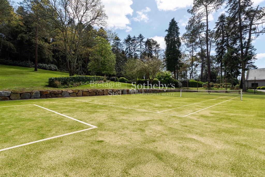 D’une superficie de 500 m² édifiée sur une parcelle de plus de 2 hectares avec un accès direct à la rivière de l’Aven par une cale, la villa à la décoration soignée offre un grand salon-salle à manger avec cheminée ouvrant sur une terrasse d’une superficie de 200 m2 aménagée en salon d’extérieur pour de superbes déjeuners et diners au bord de la piscine chauffée 15×2,8 à fond mobile Aqualift et sécurisée.