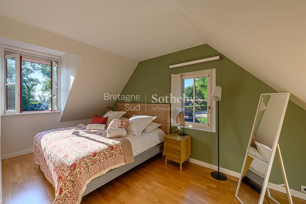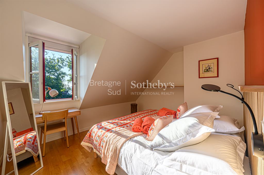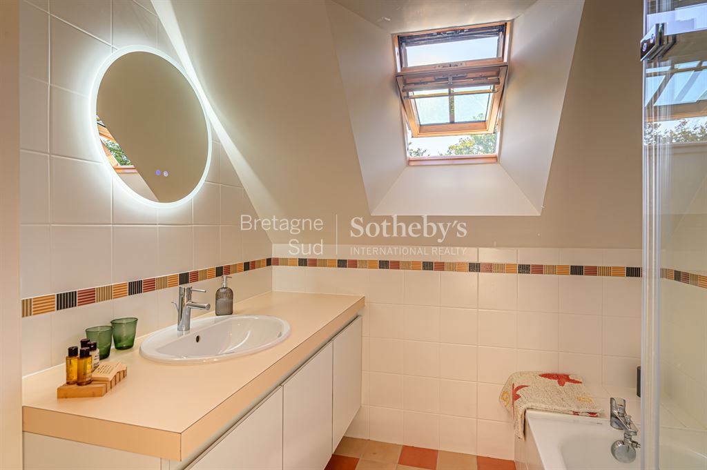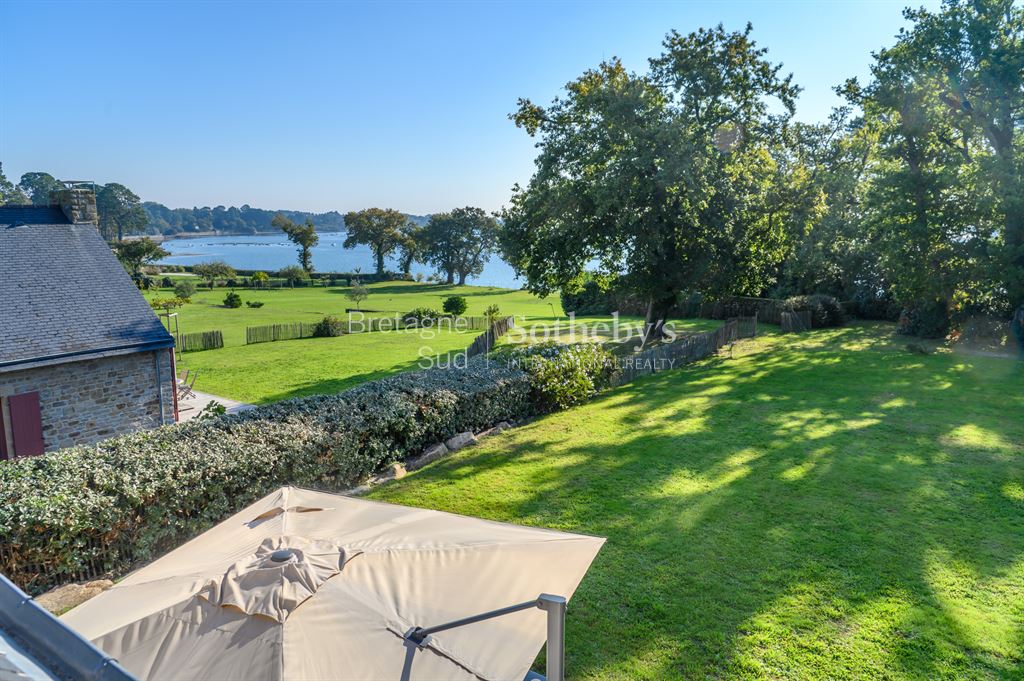 Bretagne Sud Sotheby’s International Realty a le plaisir de vous proposer, les pieds dans l’eau avec une vue époustouflante sur le Golfe du Morbihan, cette charmante demeure en pierre de 97 m2 complétée d’un spa, entièrement rénovée à la décoration soignée et raffinée, ouvrant sur un joli jardin de 400 m2. Un petit sentier côtier vous conduit en 2 min à pied à une petite plage très calme et typique du Golfe. Le charmant petit port de la Pointe d’Arradon et ses restaurants panoramiques, ses dégustations de fruits de mer et sa magnifique vue sur le Golfe du Morbihan et ses îles est à 700 m, tout comme l’école de voile. Le centre d’Arradon, ses commerces et son petit marché est à 15 min à pied.