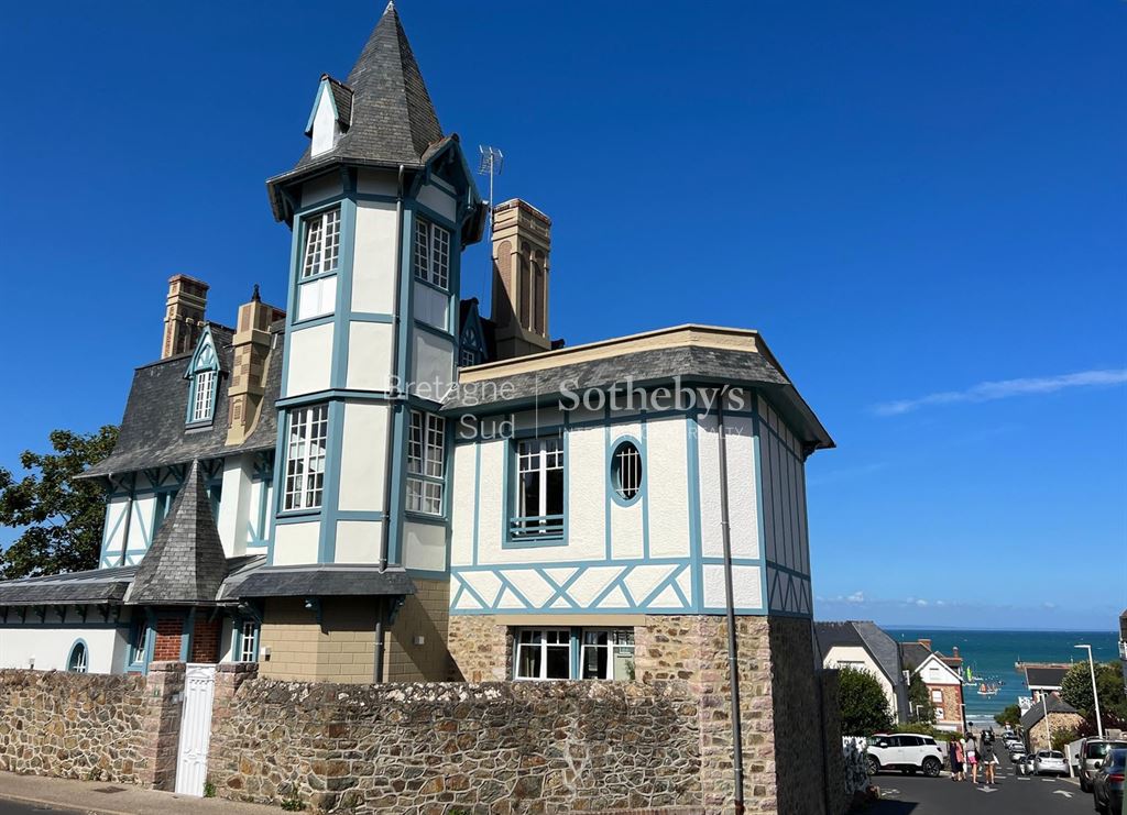 Bretagne Sud Sotheby’s International Realty à le plaisir de vous présenter en Bretagne Nord entre plages de sable fin et falaises rocheuses, cet authentique et prestigieux manoir du 19ème siècle, classé au patrimoine de la jolie station balnéaire familiale de Pléneuf-Val-André, dotée d’un riche patrimoine culturel et de villas prestigieuses. À 50 m d’une belle plage de sable fin et à 100 m du centre village, cette villa balnéaire de caractère avec vue partielle sur la mer, entièrement rénovée avec des matériaux de qualité et à la décoration élégante et chic, présente une superficie de 400 m2 réparti sur 4 niveaux, édifiée sur un jardin clos de 538 m2, pour de magnifiques vacances en famille ou entre amis.
