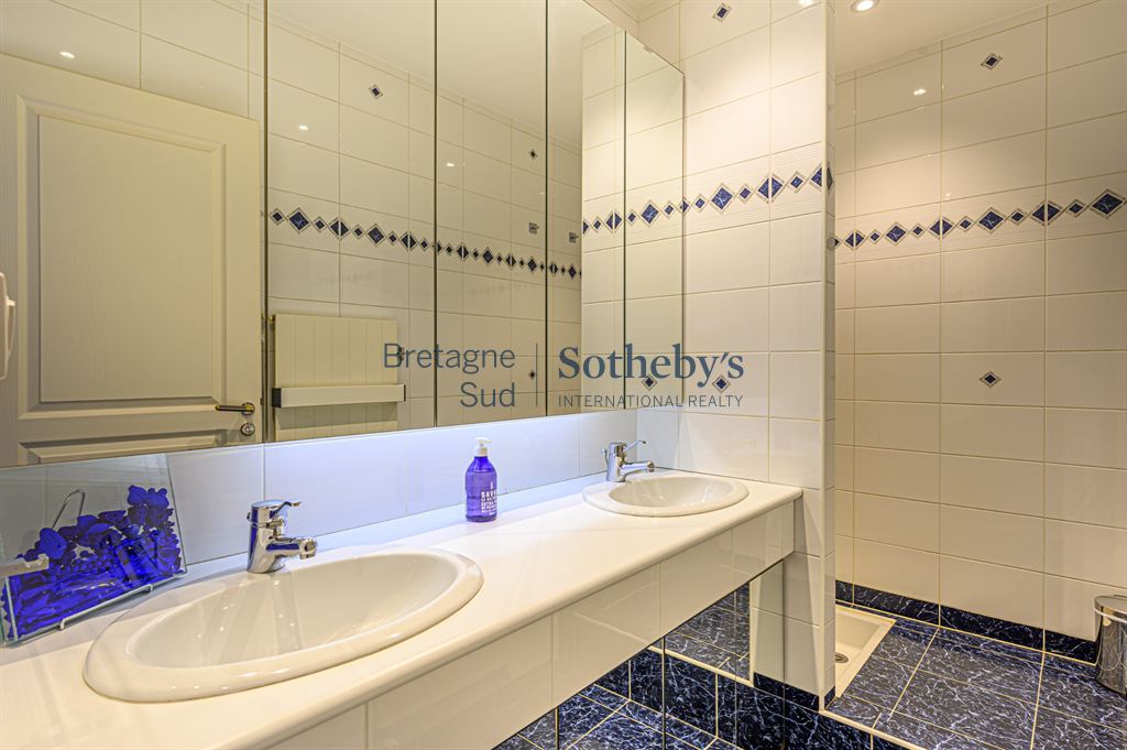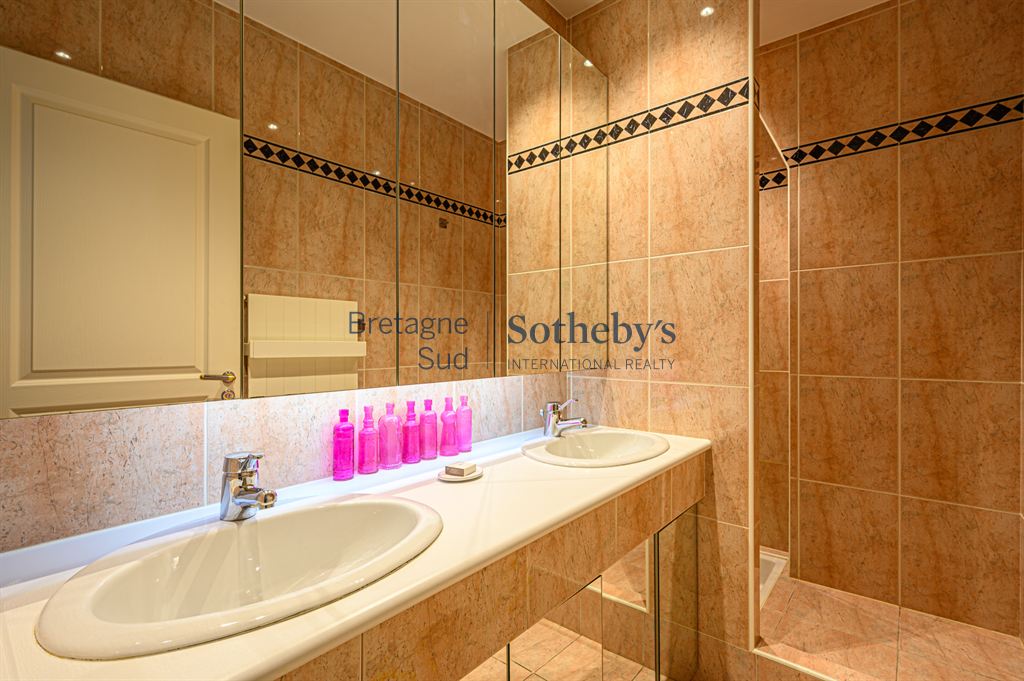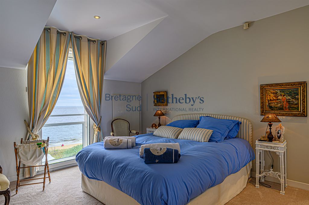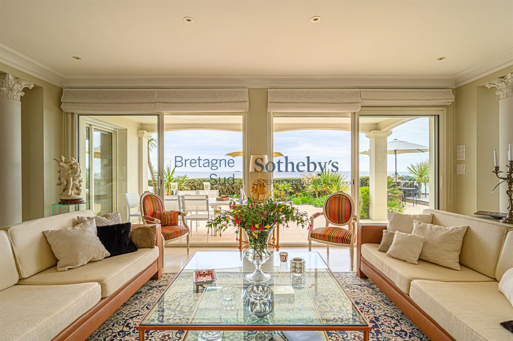 Bretagne Sud Sotheby’s International Realty a le plaisir de vous présenter, les pieds dans l’eau avec un accès direct à la belle plage de sable de Bonne Source, cette villa de luxe et de prestige avec piscine.