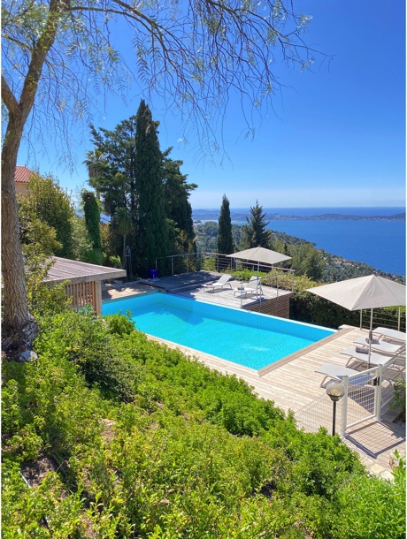 La grande piscine au bout du jardin vous offre aussi une vue imprenable et un espace apéritif.