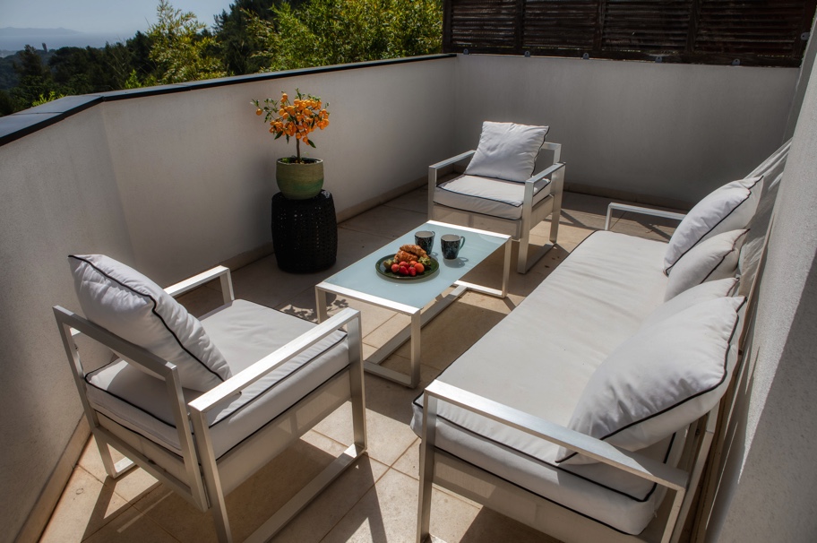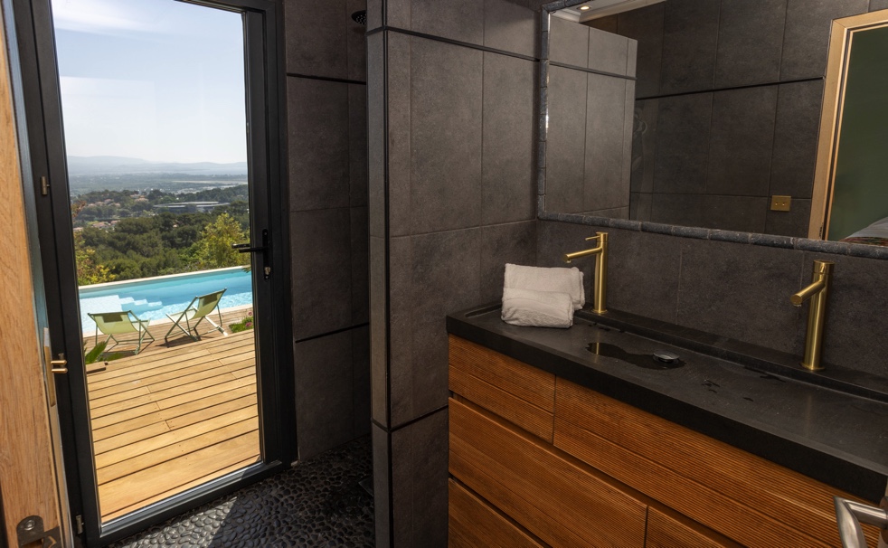 La Villa JADE peut accueillir jusqu’à 6 personnes. Elle est composée d’une chambre principale en rez de chaussée avec salle de douche attenante et we séparé. Ensuite à l’étage 2 chambres doubles (dont une avec sa grande terrasse) et une magnifique salle de bain viennent compléter la partie hébergement.