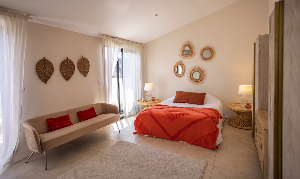 Décorée avec goût par sa propriétaire, vous serez plongé rapidement dans l’univers coloré et énergique de cette villa.