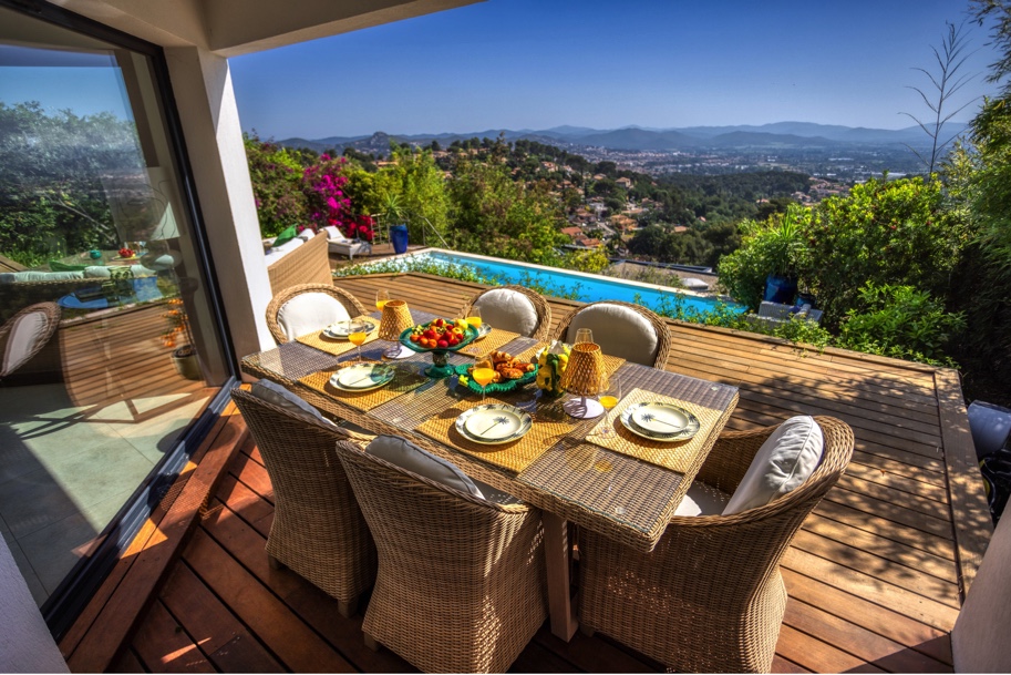 Située sur les hauteurs du mont des oiseaux à Hyères dans le Var (83), au calme et profitant d’une vue dégagée sur les îles d’or, la villa JADE bénéficie de tout le confort et les équipements nécessaires pour des vacances inoubliables en famille ou entre amis.