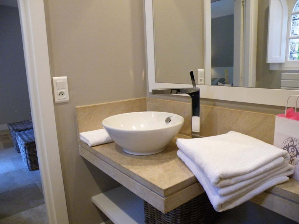 2 chambres avec salle de bains privative et salle d’eau avec Français portes ouvrant sur jardin.